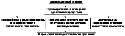 Главная особенность этой стадии: недостаточная эффективность адаптивных реакций и нарастание повреждающего действия экстремального агента.