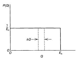 Рис. 6.6 Нормированный энергетический спектр при рассеянии нейтронов с энергией En на водороде. P(Q)dQ – вероятность потери энергии в интервале Q и Q +dQ.