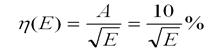 Разрешение в диапазоне энергий от 0,1 до 20 МэВ хорошо описывается зависимостью (условность h(E))