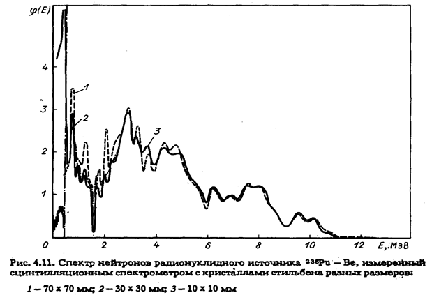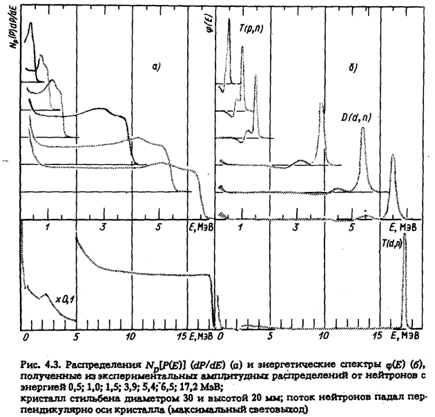 Функция световыхода Р(E) определяет связь между энергией падающих нейтронов и амплитудой на выходе спектрометрического усилителя в шкале энергий электронов или относительных единицах с помощью источников гамма-квантов