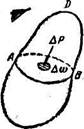 На площадку Δω приходится уравновешивающая сила, равная ΔР. Среднее давление на площадку Δω будет равно: