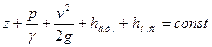 где z – удельная энергия положения относительно какой-либо плоскости – геометрический напор;