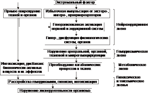 Стадия адаптации (компенсации, непрогрессирующая, эректильная) является результатом значительного по тяжести и масштабу повреждения органов и тканей экстремальным фактором, а также возникающих под его влиянием вторичных изменений в организме.