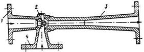 Таким образом образован струйный насос, который работает только на отсасывающих магистралях при давлении окружающей среды. Такие насосы называются эжекторами.