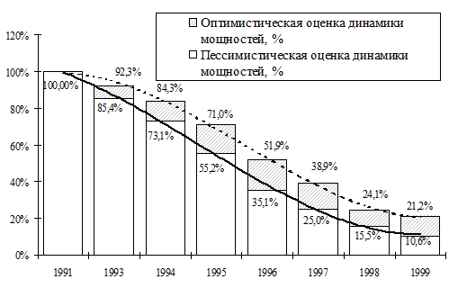Динамика безвозвратных потерь потенциала производственной базы