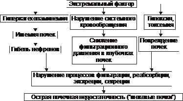 Рис. 20–11. Основные звенья патогенеза «шоковых почек».