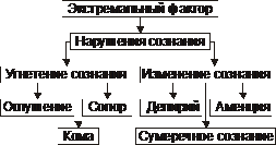Степень нарушений сознания нередко играет определяющую роль в исходе многих заболеваний и патологических процессов. Поэтому определение состояния сознания — один из основных моментов при обследовании больного, особенно в экстренных ситуациях. Нарушения (расстройства) сознания перечислены на рис. 20–12