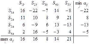 Рассмотрим решение матричных игр данного класса на следующем примере: