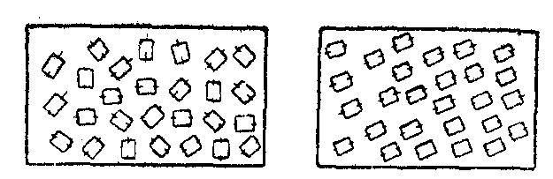 На рисунке 15 дано схематичное представление о расположении зерен до и после деформации. Причина упорядоченной ориентировки зерен объясняется стремлением осей зерен занять положение при однородной деформации.