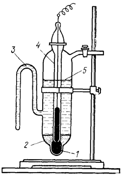 3 – отросток для соединения каломельного электрода с другими электродами; 4 – платиновая проволока; 5 – раствор хлорида калия
