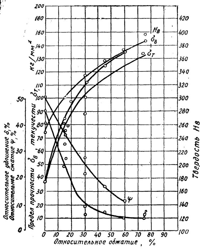 Рисунок 16 – Влияние пластической холодной деформации на механические свойства металла
