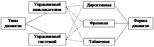 Типы и формы диалога выбирают независимо друг от друга: любая форма применима для обоих типов диалогов (рисунок 15.1).