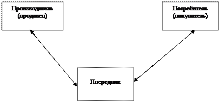 Посредник по отношению к производителю выступает как покупатель. Отношения между ними прекращаются после выполнения сторонами своих обязательств по договору купли-продажи. Посредник становится собственником товаров и может реализовывать их по своему усмотрению на любом рынке и по любой цене.