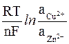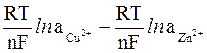 Вычитая второе уравнение из первого получим выражение для расчета э.д.с. медно-цинкового гальванического элемента