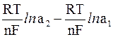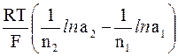Вычитая первое уравнение из второго, получим формулу для подсчета э.д.с. с концентрационного элемента: