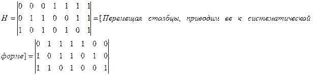 Рассмотрим код Хэмминга (7, 4). Проверочная матрица:
