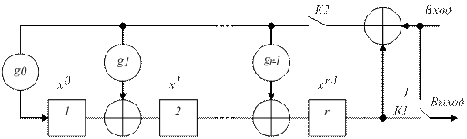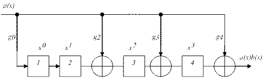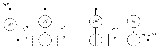 Их основу составляют схемы умножения и деления полиномов, основными элементами которых являются триггерная ячейка, сумматор по модулю два, умножитель на скаляр.