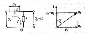 Рисунок 13.3 – Принципиальная схема (а) и векторная диаграмма (б)