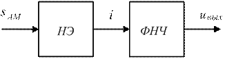 Детектор состоит из двух элементов: НЭ и ФНЧ. НЭ преобразует спектр входного модулированного сигнала так, что в спектре выходного тока появляются составляющие модулирующего сигнала. ФНЧ выделяет эти составляющие и предотвращает прохождение на выход детектора высокочастотных составляющих.