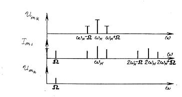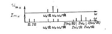 , ее гармоники и комбинационные частоты. В составе спектра появляется низкочастотная составляющая