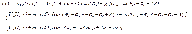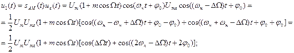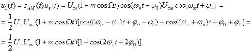 - перемножитель. Перемножает АМ и опорный сигналы. Сигнал на его выходе: