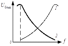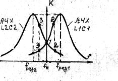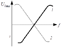 Рисунок 22.6 - Детекторная характеристика рассмотренного ЧД: 1 – частоты настройки первого и второго контуров: