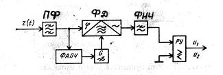 ПФ додетекторной обработки ограничивает мощность помех на входе детектора. В зависимости от полярности напряжения на выходе ФНЧ в решающем устройстве РУ формируются выходные сигналы