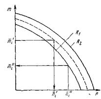 Решив это уравнение относительно g, т. е. как функцию двух переменных m и n в неявном виде, получим зависимость количества вылетающих и прилетающих летательных аппаратов для зоны управления с учетом правил, регламентирующих деятельность диспетчера. Имея необходимые статистические характеристики данных оценок в виде М(t) и d(t), для каждой из них можно построить график возможной рабочей нагрузки диспетчера в виде оценки его пропускной способности, выражающейся суммой вылетающих и прилетающих летательных аппаратов в данный момент времени с учетом принятой вероятности задержки в обслуживании (рис. 2.1).