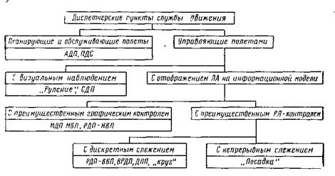 Деятельность диспетчера отличает опосредствованный характер управления, при котором управляемые объекты летательных аппаратов находятся вне поля его зрения. Так, из числа всех диспетчерских пунктов, участвующих в непосредственном управлении воздушным движением, диспетчеры, работающие на диспетчерском пункте руления (ДПР) и стартовом диспетчерском пункте (СДП), не всегда могут по различным причинам (рельеф местности, метеоусловия) визуально наблюдать движение летательных аппаратов. Это вызывает необходимость оснащения диспетчерских пунктов радиотехническими и радиолокационными устройствами для получения информации о состоянии объектов управления.