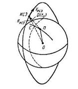 доплеровской частоты, может утверждать, что находится в плоскости, нормальной к вектору скорости. ИСЗ. Зная координаты ИСЗ в момент времени t0 и направление его движения, можно построить поверхность положения в виде плоскости, а также линию положения на поверхности Земли (линия СП на рис. 14.1). Для определения на этой линии точки, соответствующей местонахождению наблюдателя, можно использовать зависимость крутизны кривой Fд(t) в момент t0 (кривые 1-3 на рис. 10.2) от расстояния между ИСЗ и точкой приема П. Действительно, для заданных Vисз f0 и Rс крутизна изменения Fд(t) в окрестности точки t0 однозначно связана с наклонной дальностью D(t0), т. е, расстоянием между ИСЗ и потребителем в момент времени t0. Определив D(t0), строят поверхность положения в виде сферы с центром в точке нахождения ИСЗ в момент t0. Местоположение потребителя соответствует точке пересечения этой сферы с линией положения СП.