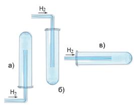 2.Какой рисунок (а, б или в) правильно показывает собирание водорода?