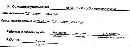 социальные льготы; дополнительные сведения; основание увольнения.