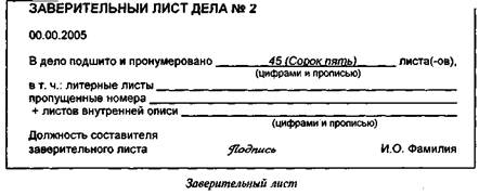 подшить в конце дела заверительный лист, в котором указать количество листов в деле;
