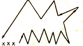 - вся группа выстраивается в колонну. По сигналу игроки двигаются зигзагами от боковой линии до середины площадки и обратно по кругу один за другим, сохраняя дистанцию 3 — 4 м. (Рис.1).