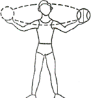 Вращать мяч вокруг шеи, передавая его с руки на руку, в одну, затем в другую сторону. (Рис.2).