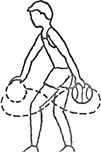 - перемещение правым и левым боком, спиной вперед в стойке баскетболиста (ноги на ширине плеч, стопы параллельно друг другу на одной линии или одна из них выдвинута вперед, тяжесть тела распределяют равномерно на обе ноги, на передние части стоп, все перемещения выполняются приставными шагами вперед, назад, вправо, влево, игрок постоянно находится в защитной стойке – устойчивом удобном положении для резкого старта, прыжка, силовой борьбы);