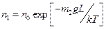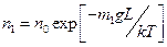 С высотой концентрация частиц легкого газа (m1) и воздуха меняются с различной скоростью