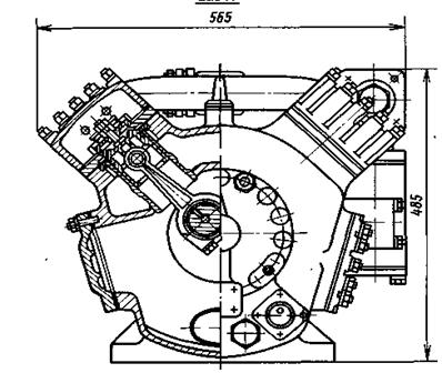 5. По количеству цилиндров: одно-, двух-, четырех-, шести- и так далее цилиндров (количество цилиндров может быть до шестнадцати). Так как валы холодильных компрессоров преимущественно двухколенчатые, то число цилиндров всегда четное, кроме одноцилиндровых с консольным или эксцентриковым валом.