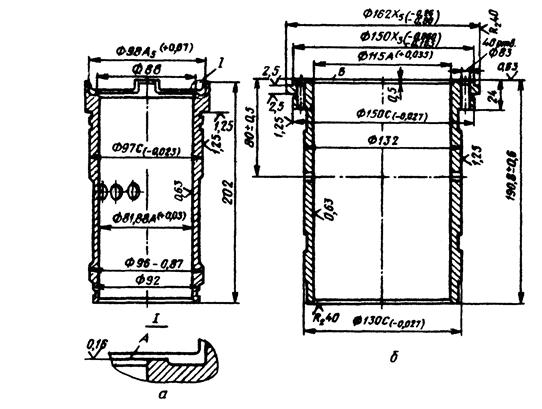 Цилиндры и гильзы цилиндров (рисунок 10) выполняют из чугуна СЧ21 или СЧ24 легированного присадками. Их твердость находится в пределах НВ 170-241.