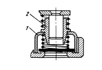 Для предотвращения аварии при попадании жидкости в полость цилиндра служит буферная пружина. Она обеспечивает возможность увеличения подъема клапанной пластины в случае влажного хода компрессора.