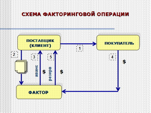 Факторинг – посредническая операция, заключающаяся в выкупе платежных требований, у поставщика товара и услуги.