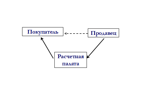 2) между биржей (Расчетной палатой) и продавцом (см. рисунок)