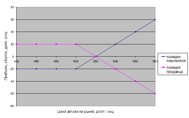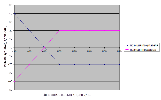 В рассмотренном примере убытки продавца опциона на покупку появятся и начнут расти при превышении ценами уровня 1520 долл., а продавца опциона на продажу – при снижении цен ниже 1480 долл.