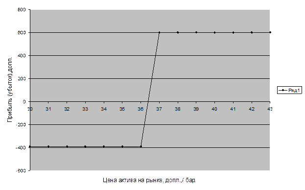 | 2.Продажа одного опциона колл, базисная цена 37 долл./бар. | 0,70 | -0,40 | |