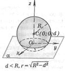 , где R – радиус шара, r – радиус круга сечения, d – расстояние от из центра шара до секущей плоскости.