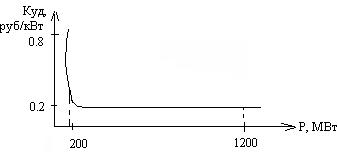 Зависимость удельных кап. вложений в 1 км линии по отношению к 1 кВт передаваемой мощ-ти: