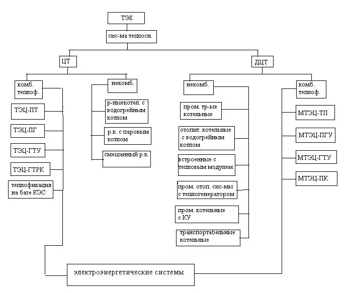 Структурная схема сис-м ЦТ и ДЦТ и их связи с ТЭК (топливно-энергетический комплекс) и энергосис-мой.
