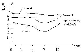 внутригодовой ход скорости ветра на территории РБ: