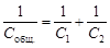Общую ёмкость при последовательном соединении конденсаторов С 1 и С 2 можно: найти из формулы: