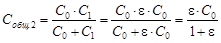 . Поэтому общая ёмкость батареи, состоящей из двух одинаковых конденсаторов ёмкостью С 0 (до заполнения одного из конденсаторов парафином) равна:
